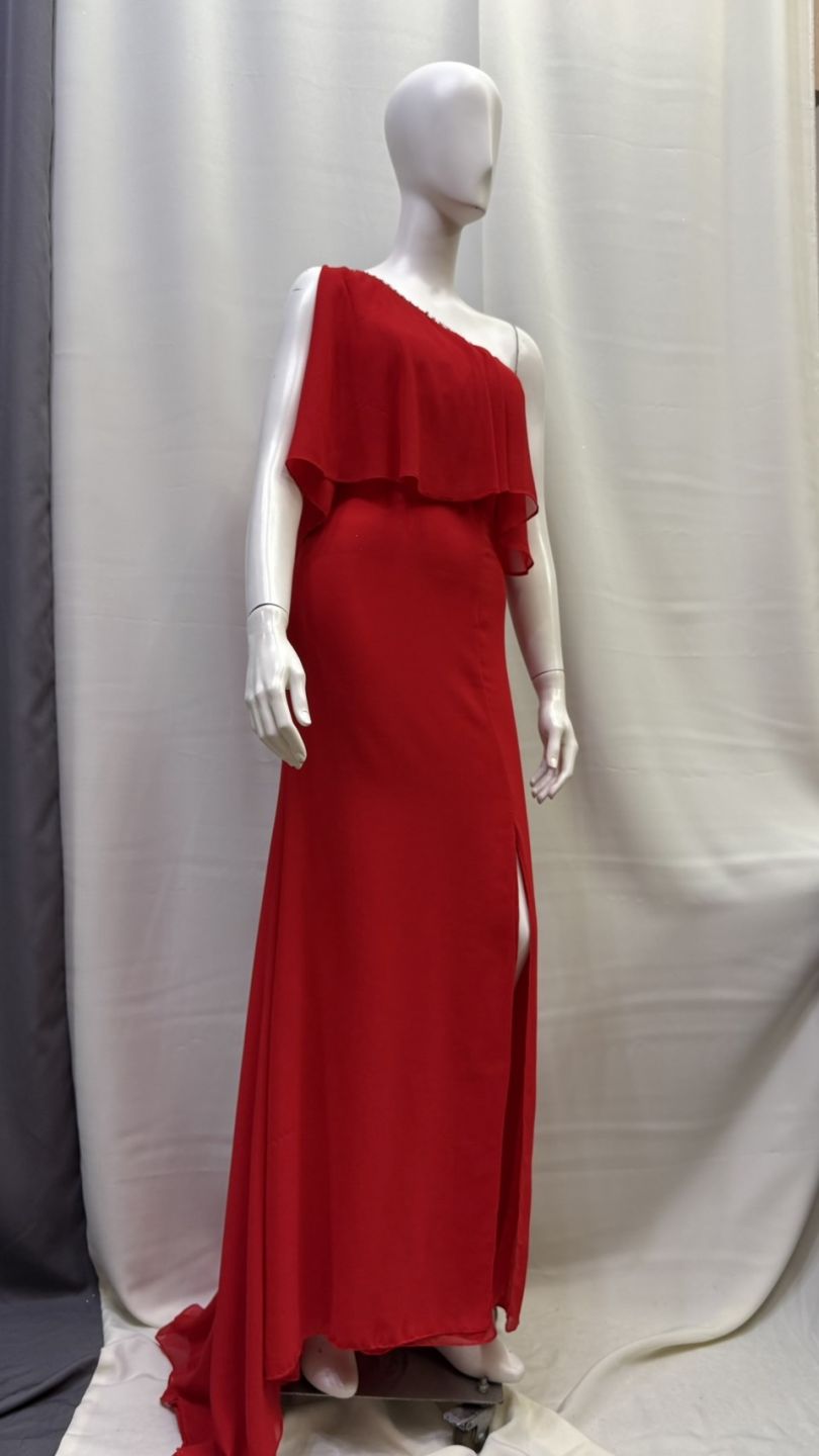 不對稱雪紡層次禮服(媽媽禮服推薦)沉穩酒紅色調,象徵喜悅與祝福,單肩不對稱設計搭配輕柔雪紡層次,修飾手臂線條,同時保有優雅垂墜感。合身剪裁勾勒身形,側開衩設計讓步伐更從容,在婚禮、喜宴或重要典禮中,低調卻不失存在感。