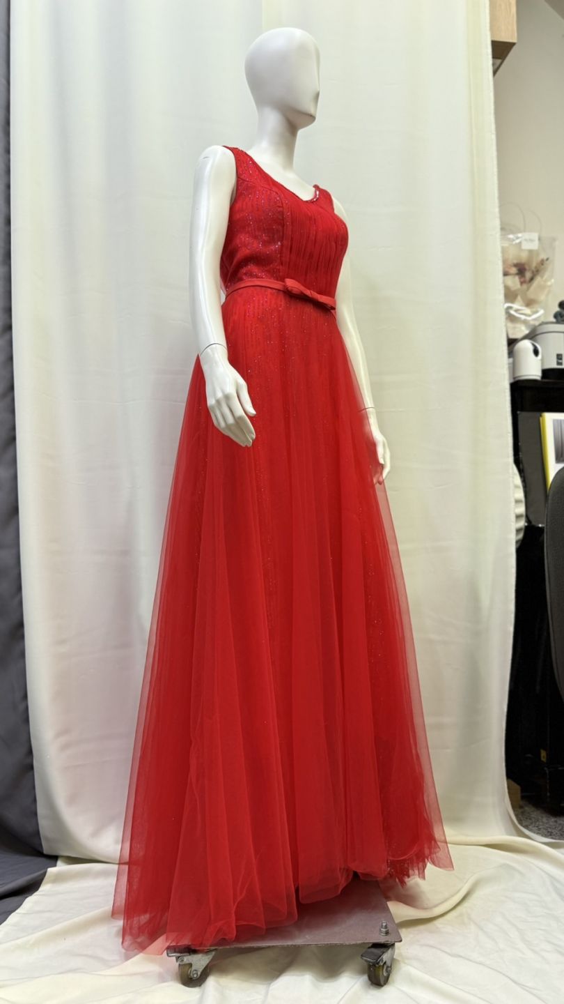 低調卻極具質感的酒紅色,單肩設計搭配立體層次剪裁,讓整體視覺更有線條感,同時修飾腰腹。裙身線條簡潔,細節集中於側邊設計,展現成熟女人的優雅自信,非常適合作為正式場合的媽媽禮服。
