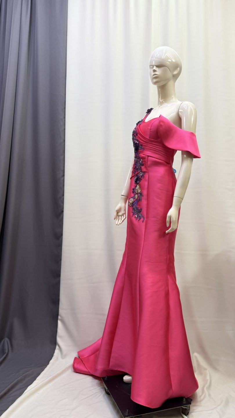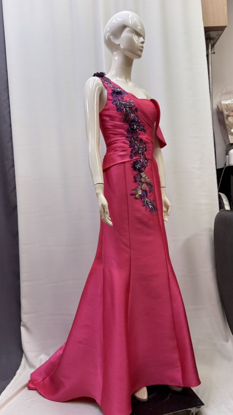 ・不對稱單肩設計,修飾肩頸線條・立體刺繡點綴,低調奢華・魚尾版型,優雅顯瘦・喜氣桃紅色系,適合重要場合